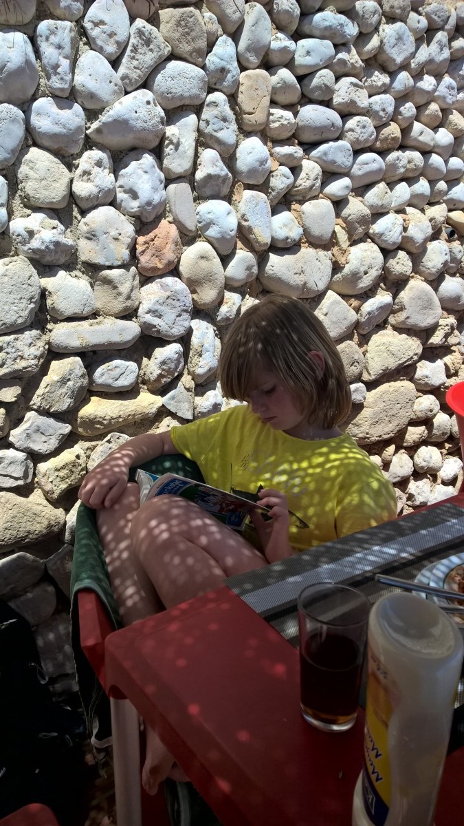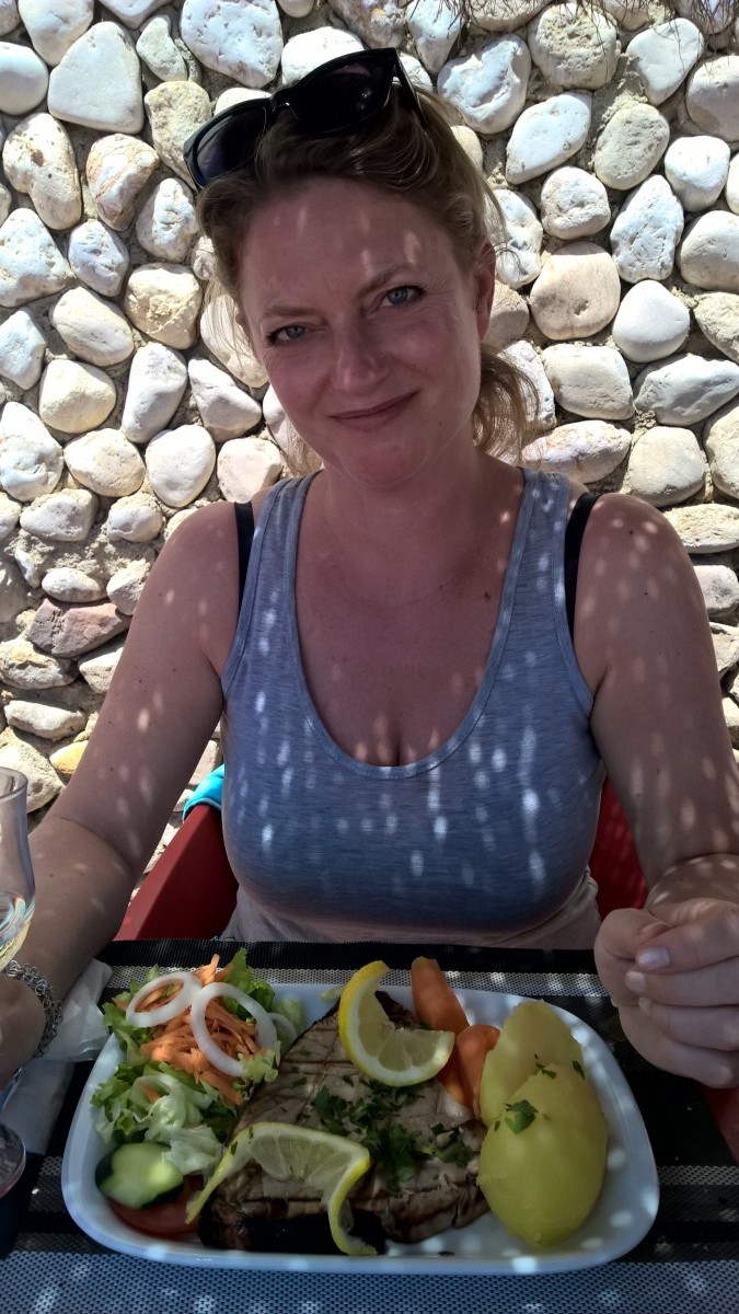 De bediening is aardig, er is zelfs wifi en ze serveren lekkere lokale taarten. Wij aten er vis en salades en liepen daarna langs het strand om weer in beweging te komen.